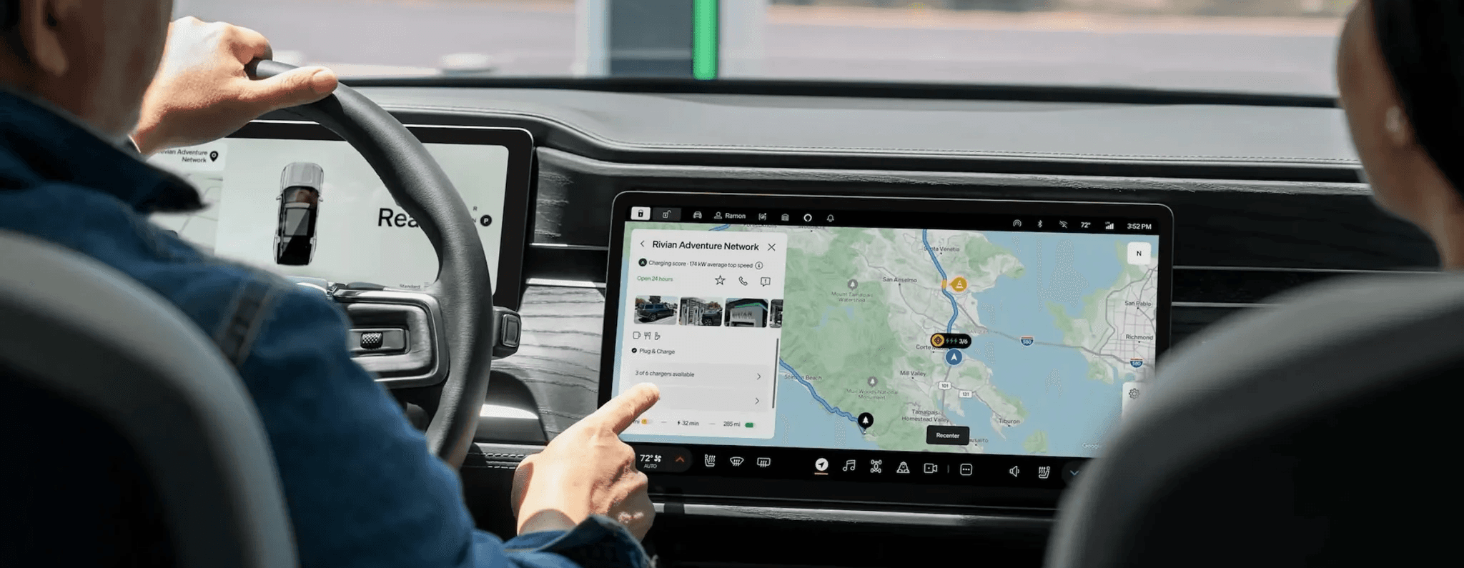 Example: Rivian’s trip planner integrates range prediction, charging stops, and live weather data into a single interface. It doesn’t just show a route; it builds confidence by anticipating what drivers need before they have to ask.